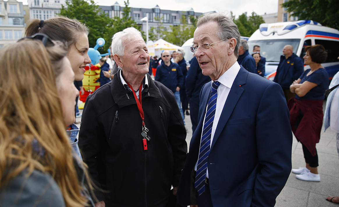 Schwerkranken Menschen am Lebensende noch einen Wunsch erfüllen - das macht der ASB nun auch in Mecklenburg-Vorpommern möglich: Franz Müntefering, Präsident des Arbeiter-Samariter-Bundes, hat heute gemeinsam mit Landtagspräsidentin Sylvia Bretschneider und dem ASB-Landesgeschäftsführer Mathias Wähner am Leuchtturm in Warnemünde den Wünschewagen für den Nordosten gestartet.